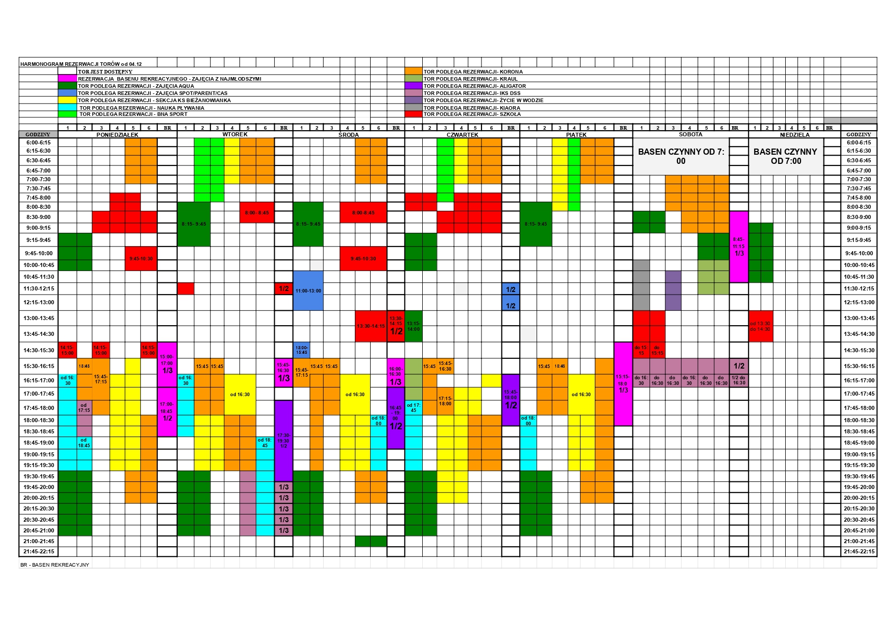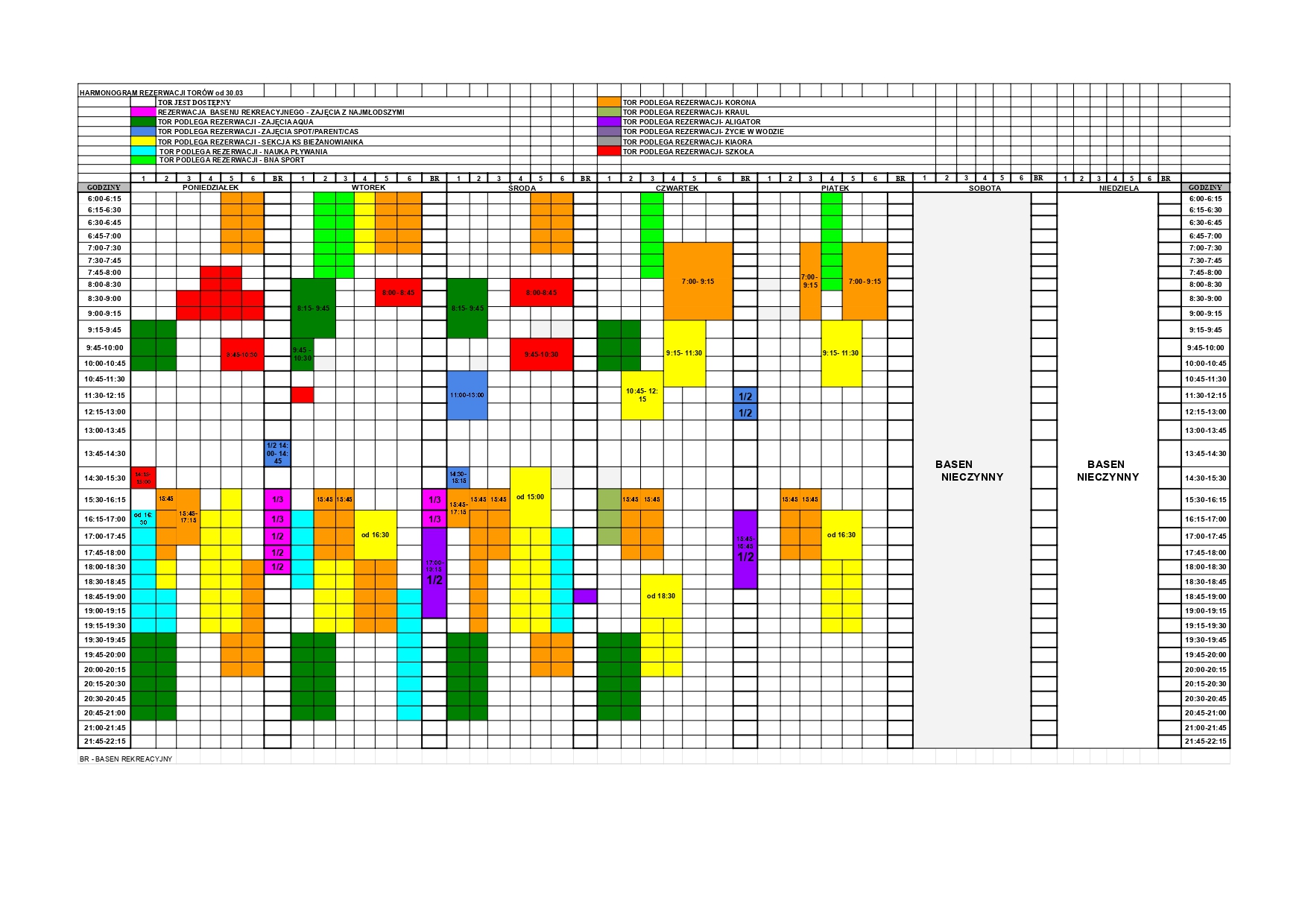 - 6 torów, w tym 3 tory z regulowanym dnem w przedziale 0-1,8 m