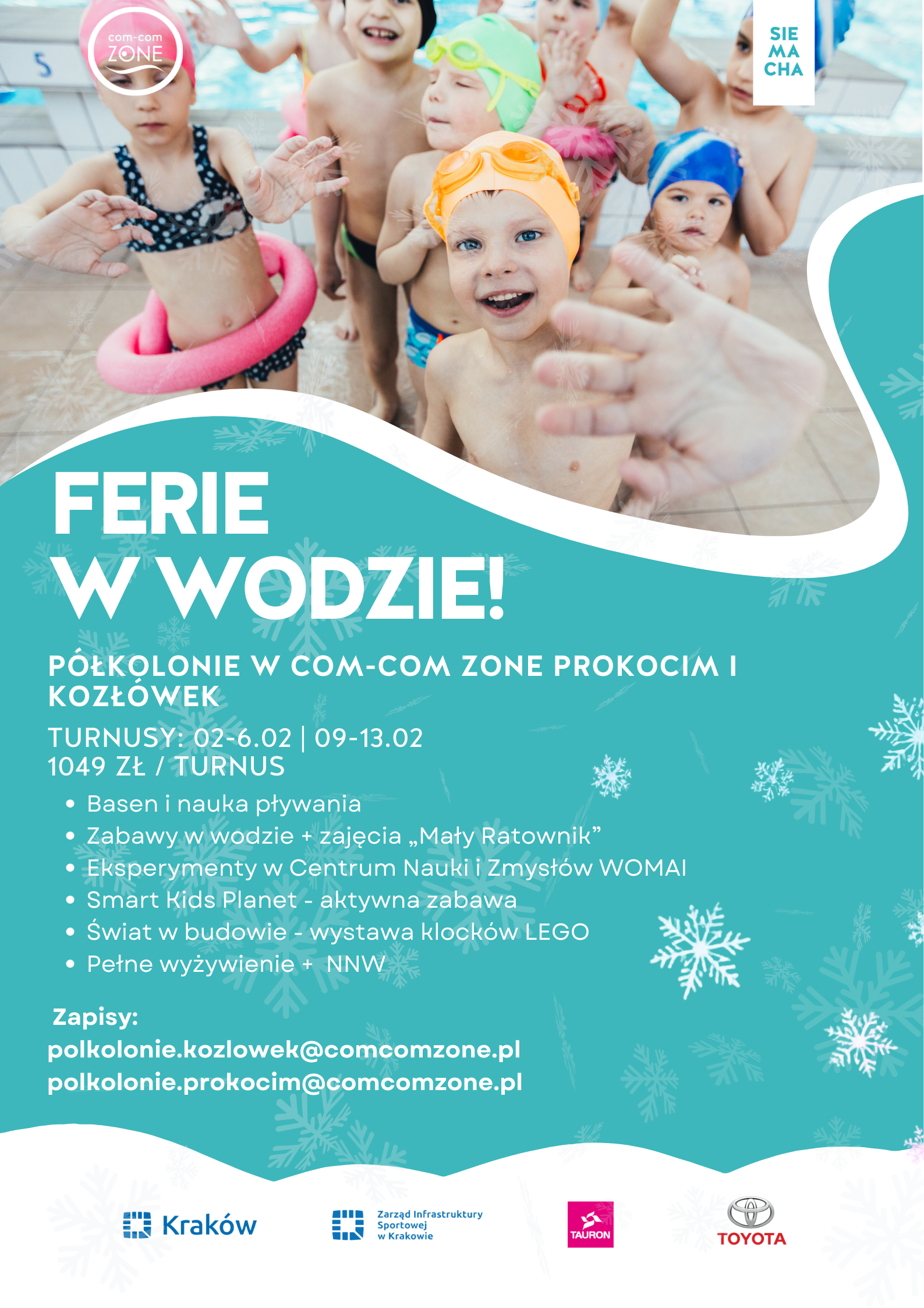 - Wszelkie spóźnienia lub nieobecności w trakcie trwania turnusu należy zgłaszać z wyprzedzeniem telefonicznie na numer 882-011-195 lub mailowo na adres [email protected]
